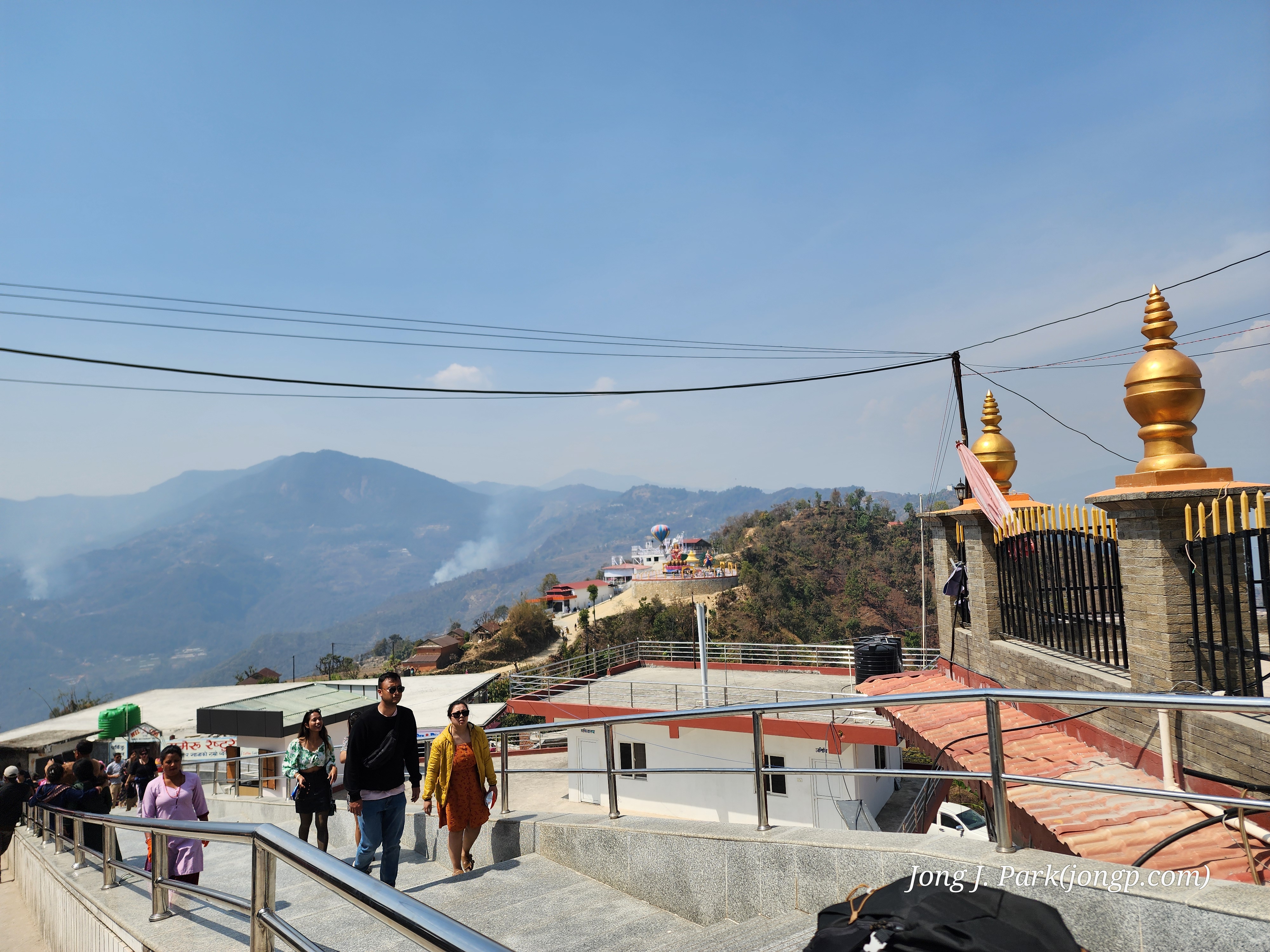 가운데 '일본산묘법사' 사원이 있고, 저 멀리 산 끝에 오늘 목적지인 품디콧 사원.